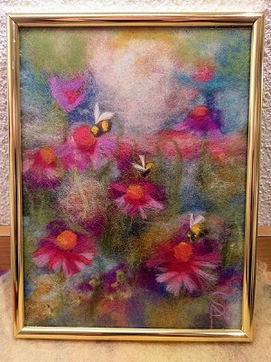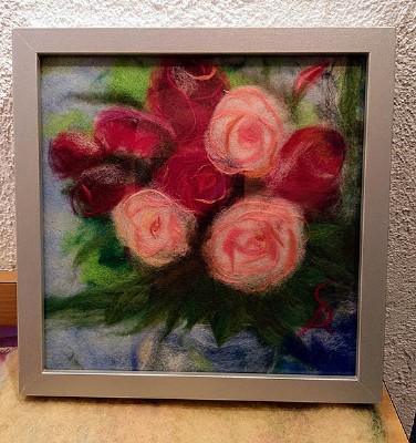 Gerne zeige ich Ihnen, wie man Wollbilder herstellt.