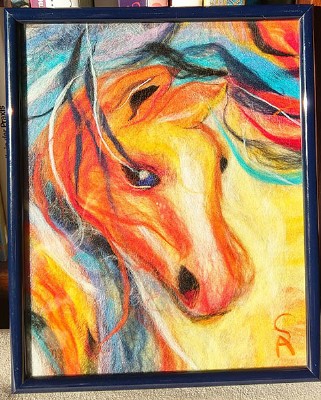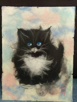 Mein Name ist Anzhelika Stoller. Ich beschäftige mich mit der Herstellung von Gemälden mit Wolle. Schafwolle (Merino) ist ein warmes schönes Material, welches die Wärme, Gefühle und Launen des Künstlers wieder gibt.