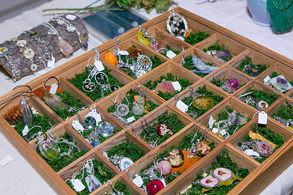 Neuartige Schmuckstücke mit echten Blumen, Blüten- und Pflanzenblättern, mit Sorgfalt und Liebe gepflückt, getrocknet und mit Crystal-Harz überzogen. Für Blumenfreundinnen, Naturliebhaberinnen und Originale.