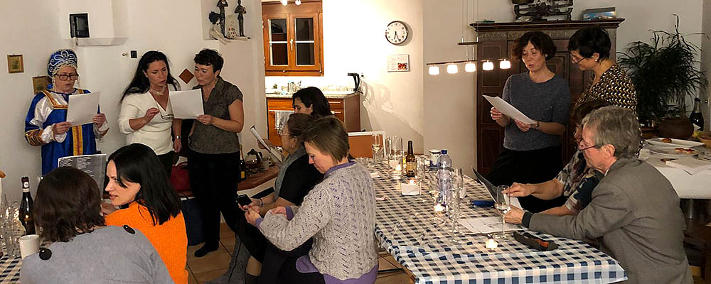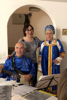Unter musikalischer Begleitung von Jim, der ein professioneller Musiker ist (und für uns fast Legende, weil er «damals» mit den Beatles gespielt hat), und seiner Frau Christine singen wir zusammen auf Russisch, Ukrainisch, Englisch und Deutsch.